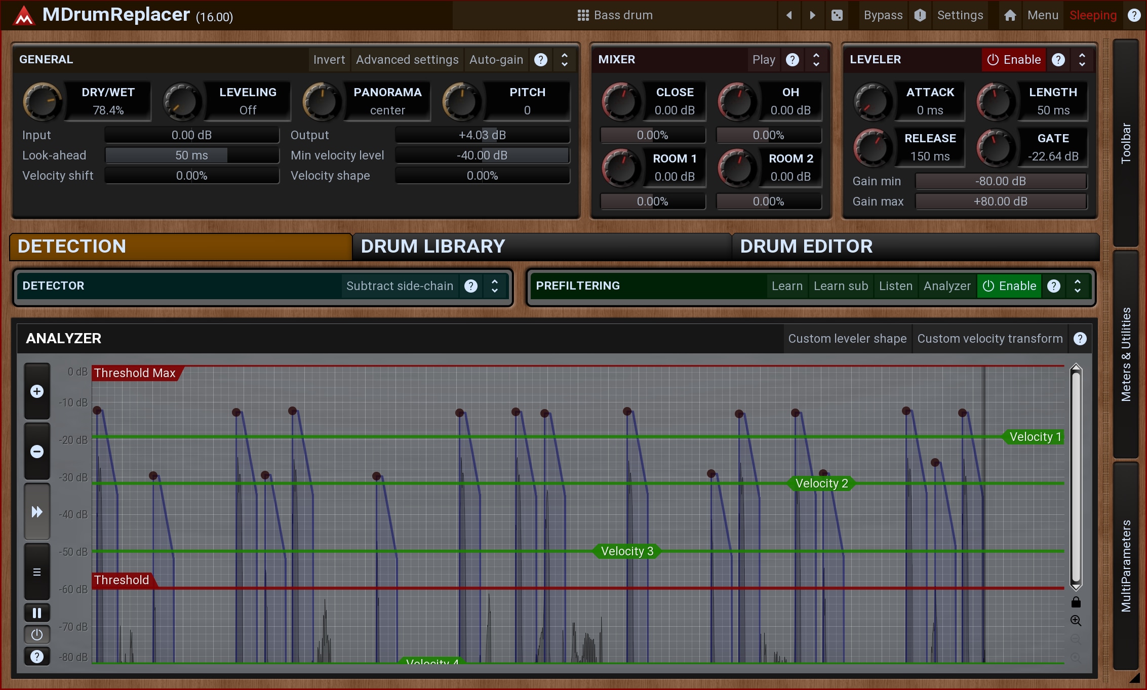 In most cases, you will simply run the detector and choose a sound you want the unwanted hits to be replaced with. Your cheap snare or kick can be replaced with high-end drum within a second.