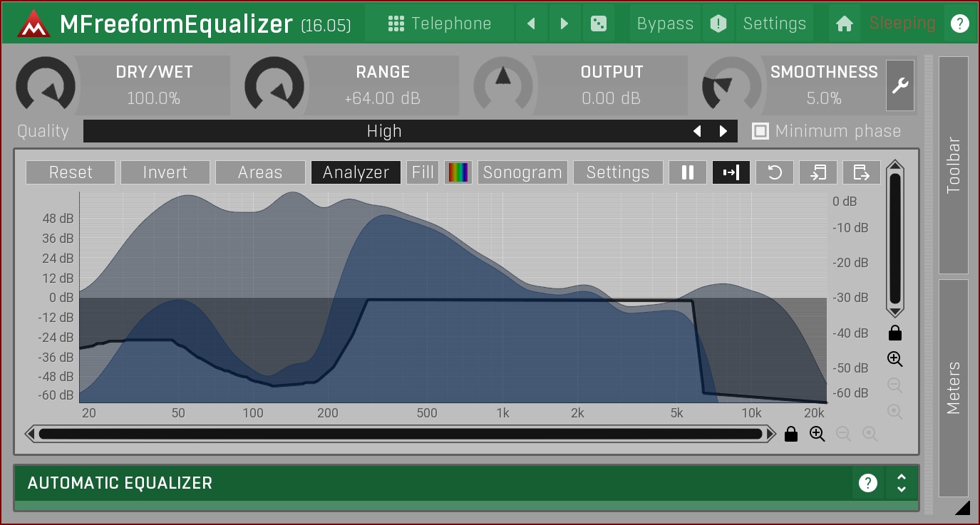 Some things just cannot be done with traditional equalizers. MFreeformEqualizer breaks all those limitations. Just draw the equalization that you want and the plugin will make it happen!