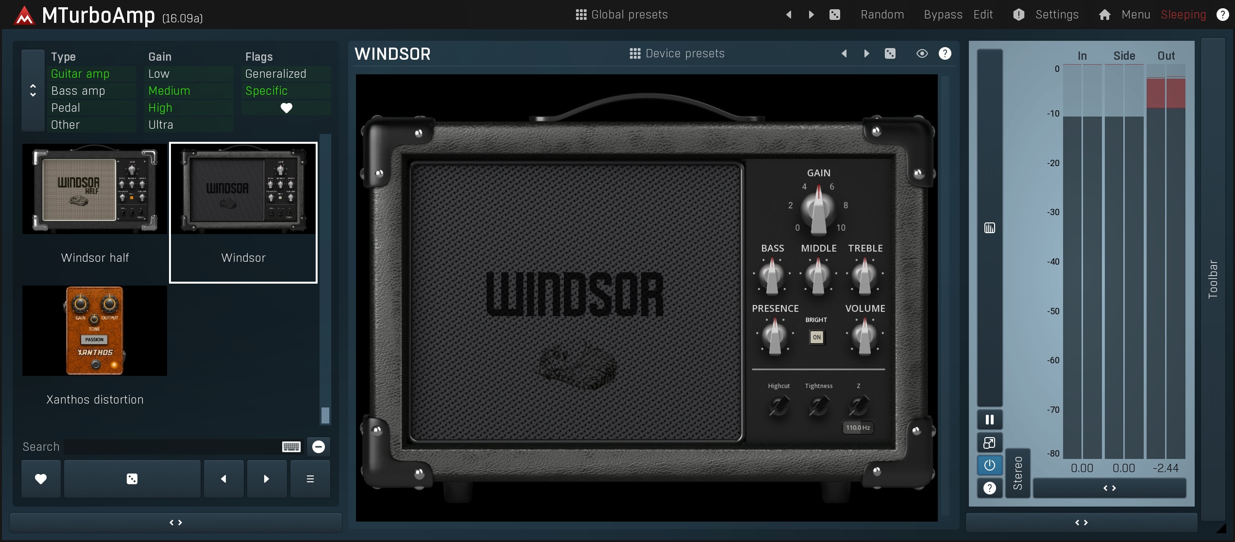 MTurboAmp comes with almost 30 amp heads and a dozen distortion pedals. But this number will constantly change - with every release - because we don't stop working on new devices.