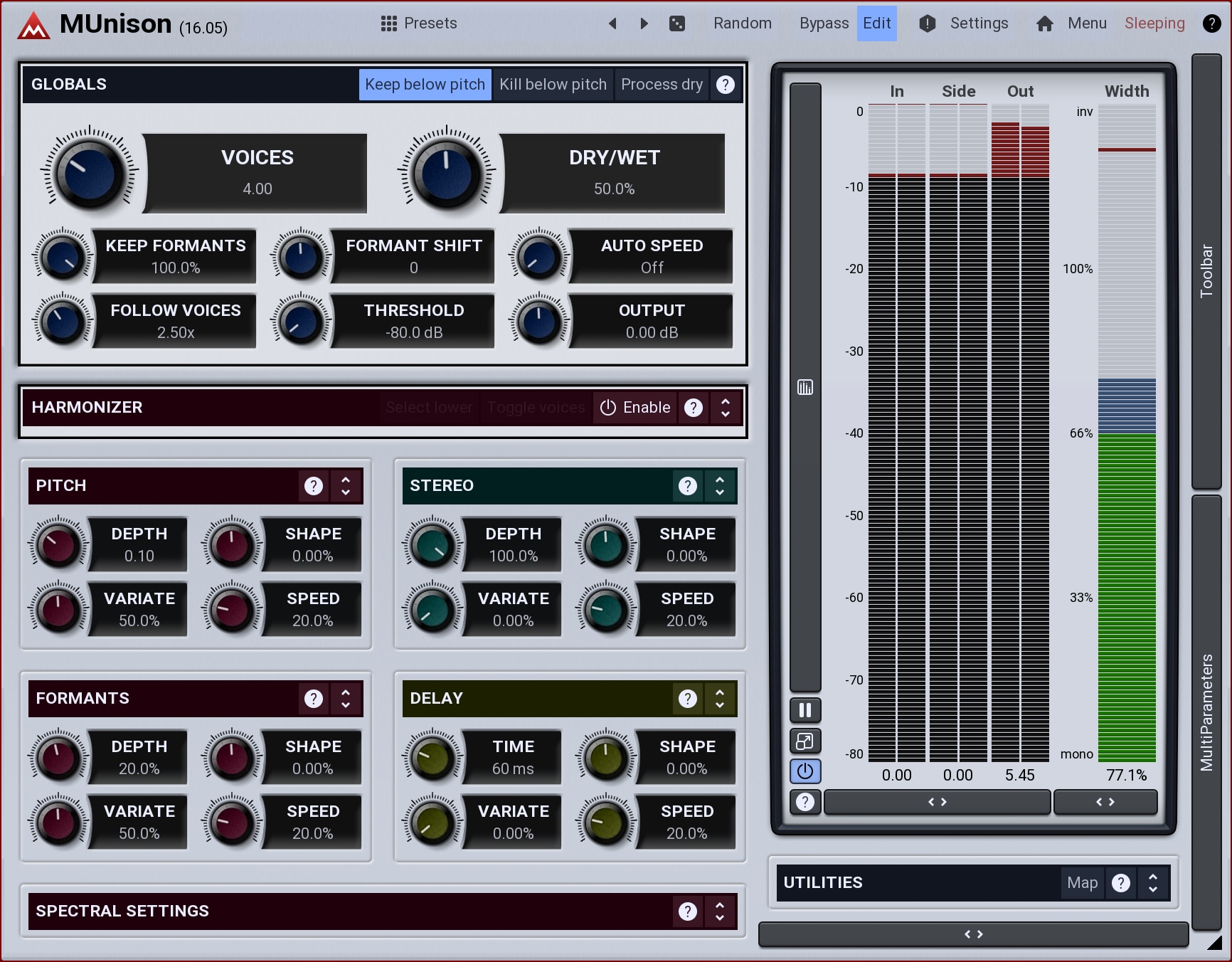 "MUnison is a high quality doubler-detuner. Its detailed controls over formant shift and detune shaping allow me to dial in the right amount of thickening to monophonic tracks such as vocals, synth lines and guitar solos."